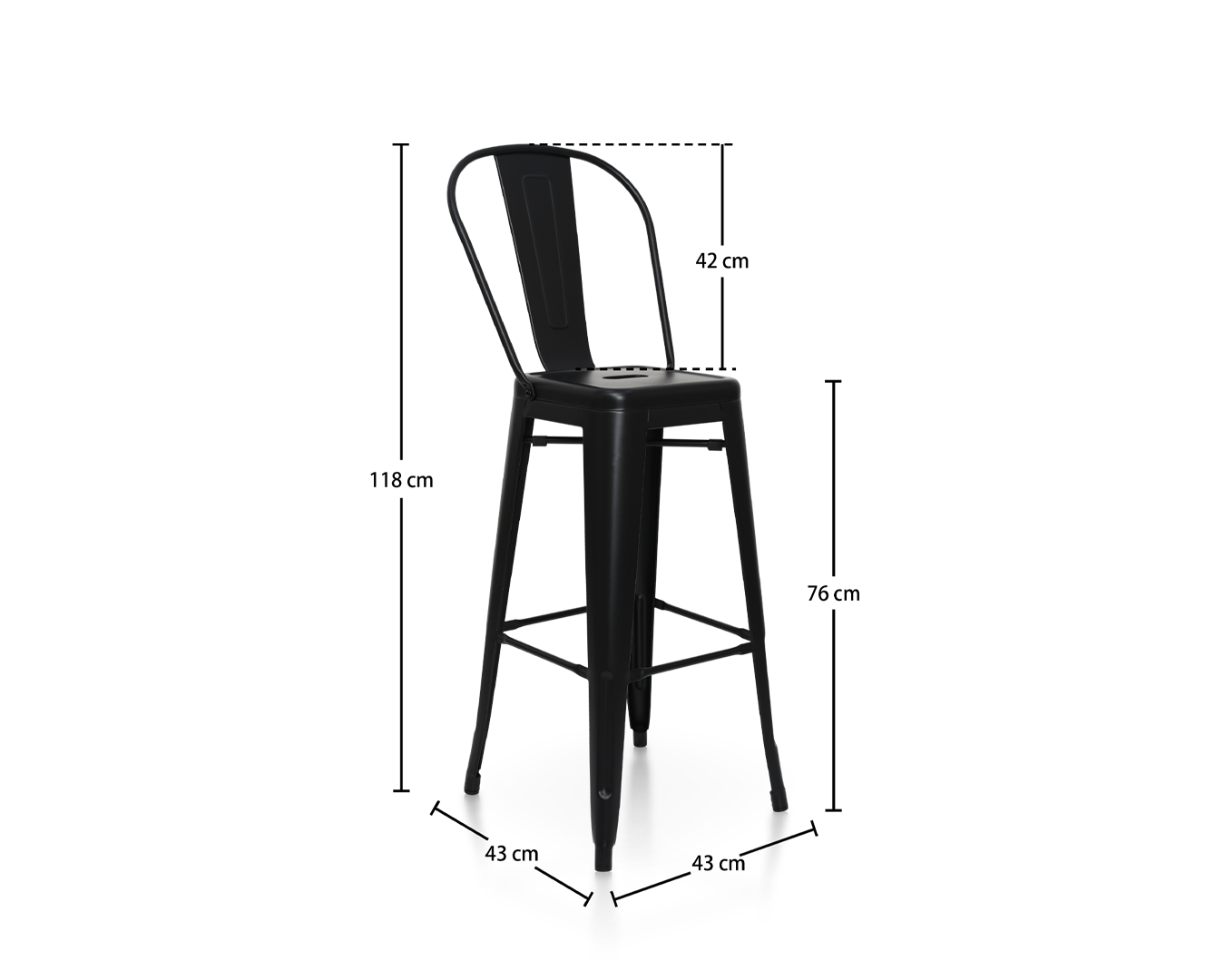 Lar / Produtos / Cadeira de design / Black Metal Barstool com encosto