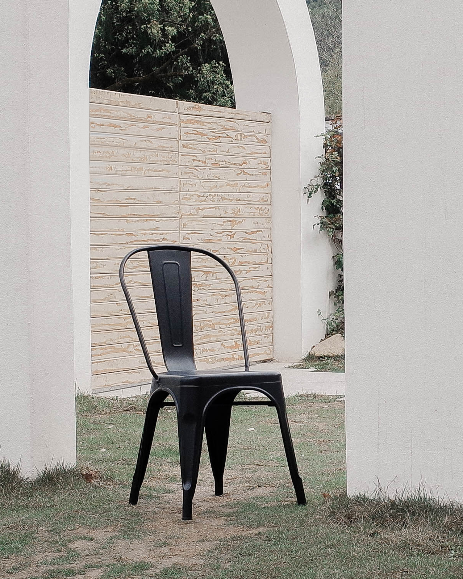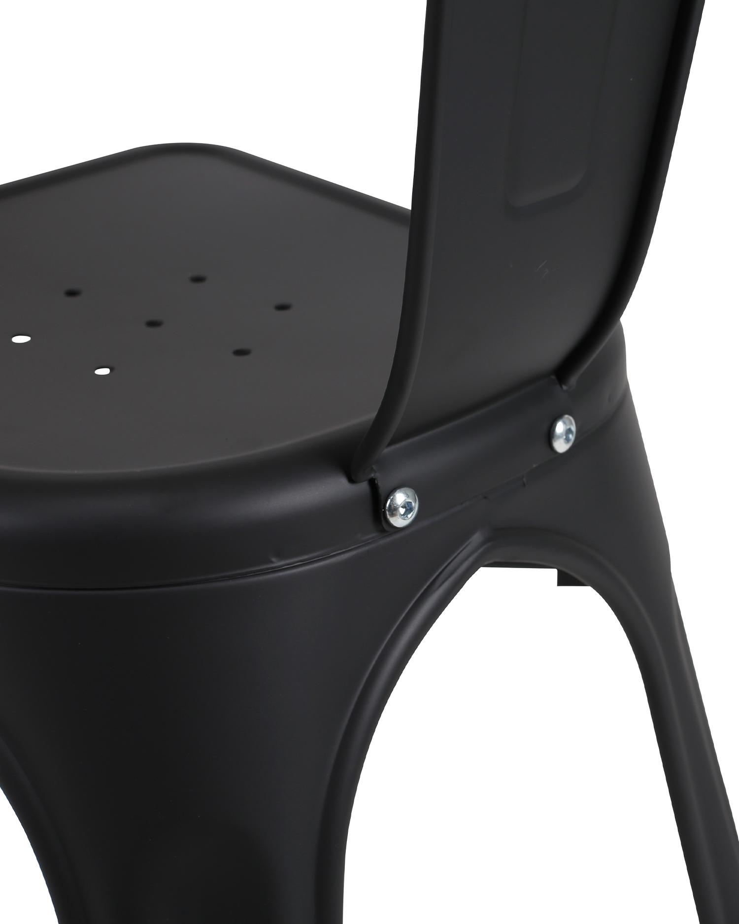 • Esta cadeira é uma celebração do design industrial, com uma estrutura de ferro preto resistente que fala muito sobre sua durabilidade e força. O assento perfurado não apenas adiciona um apelo visual distinto, mas também garante a respirabilidade, tornando -o confortável para uso prolongado.