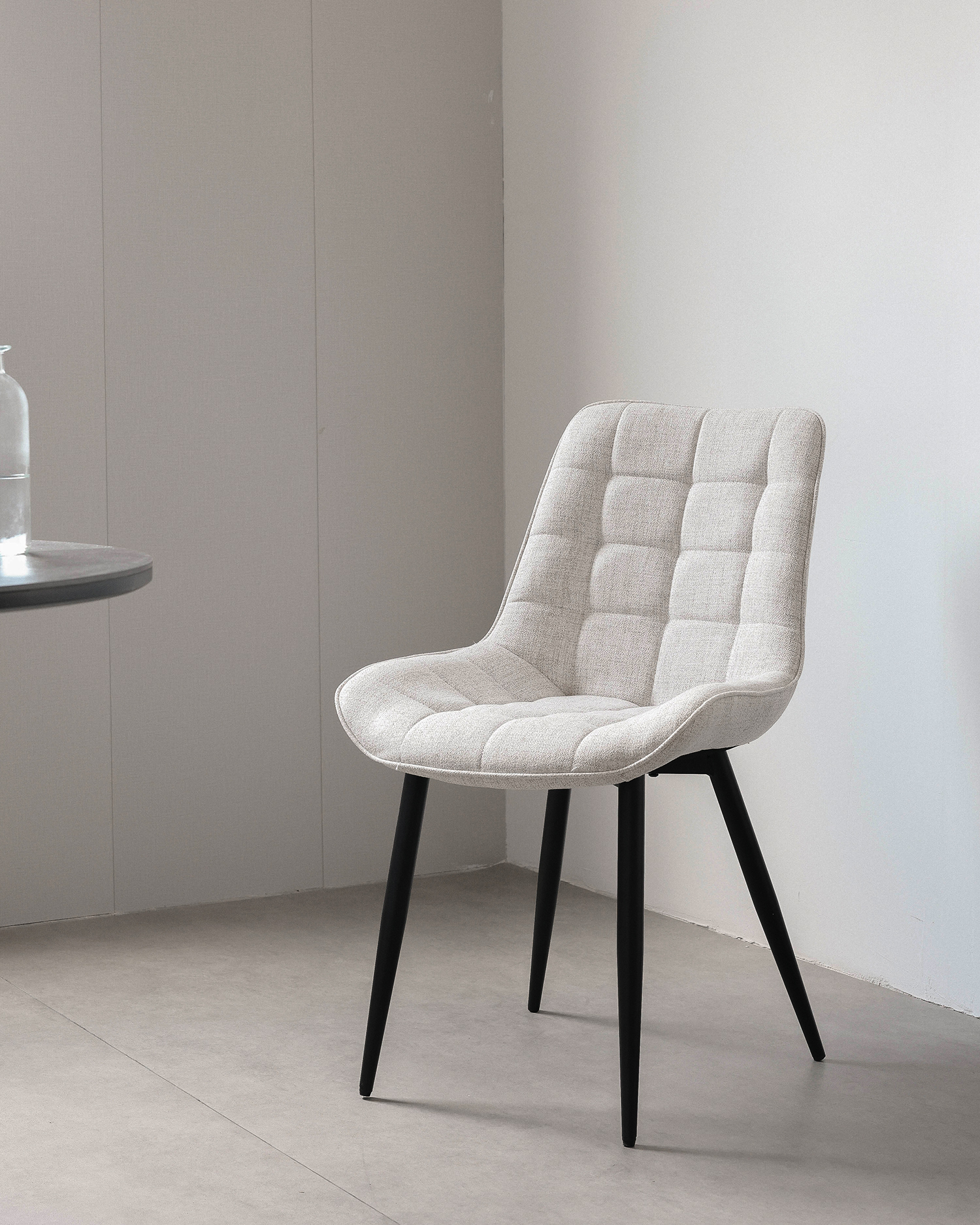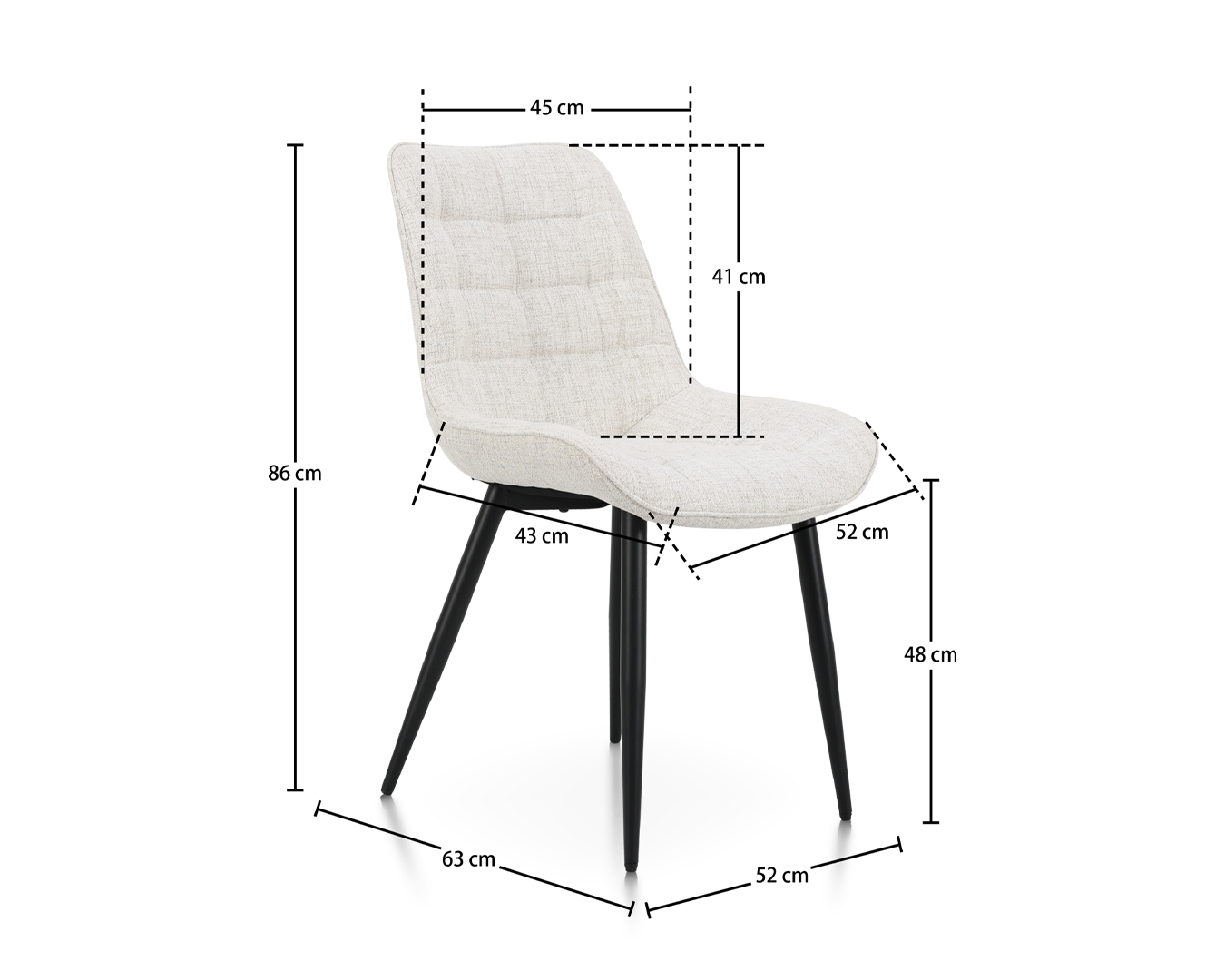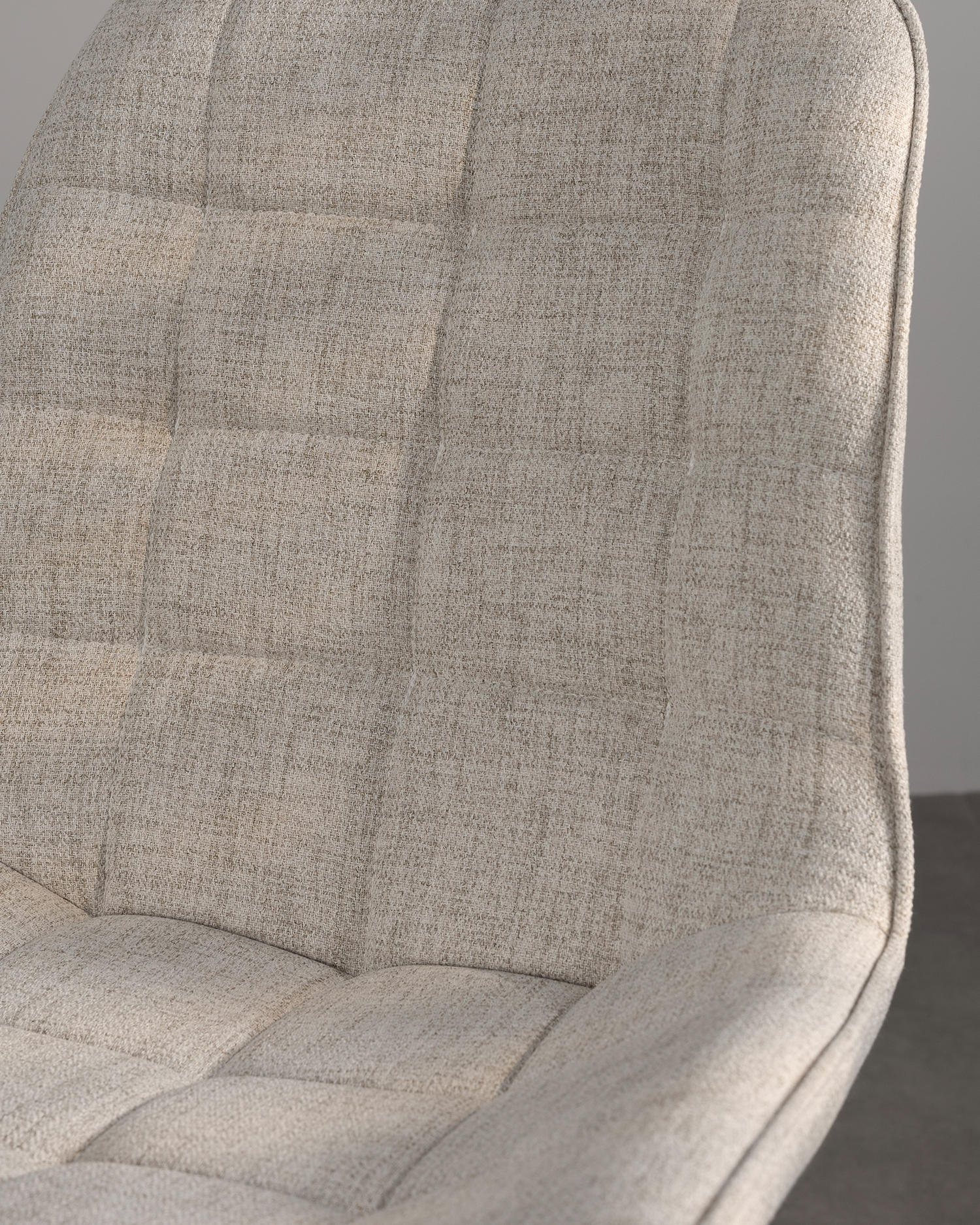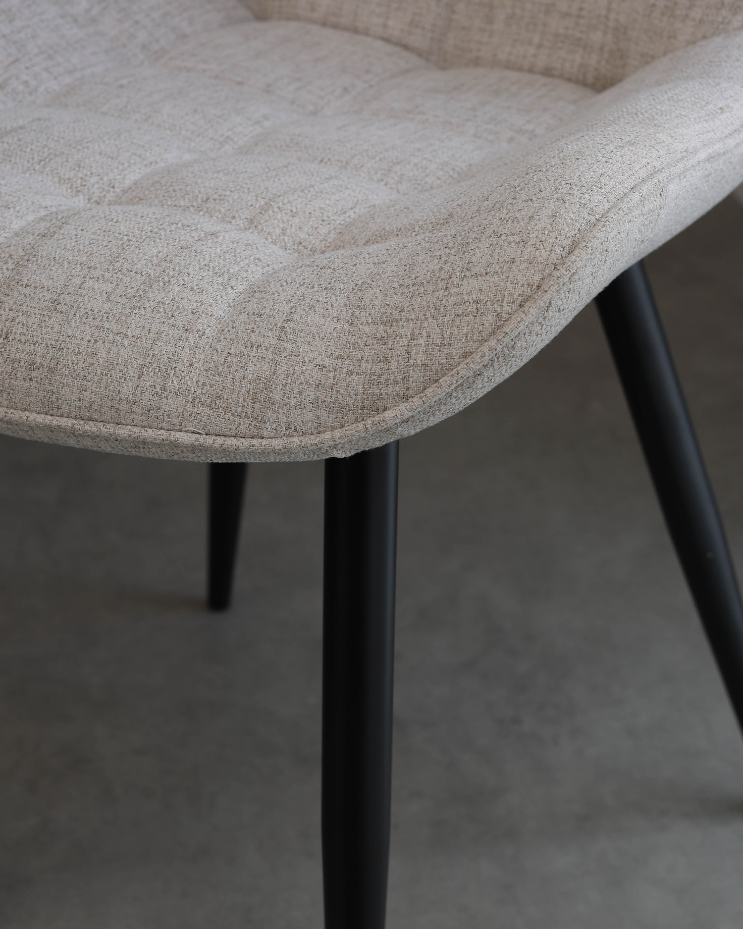 • Assento estofado: O assento é estofado em um tecido texturizado de alta qualidade, que oferece uma experiência de assento suave e confortável. A cor bege neutra complementa qualquer decoração da sala de jantar.