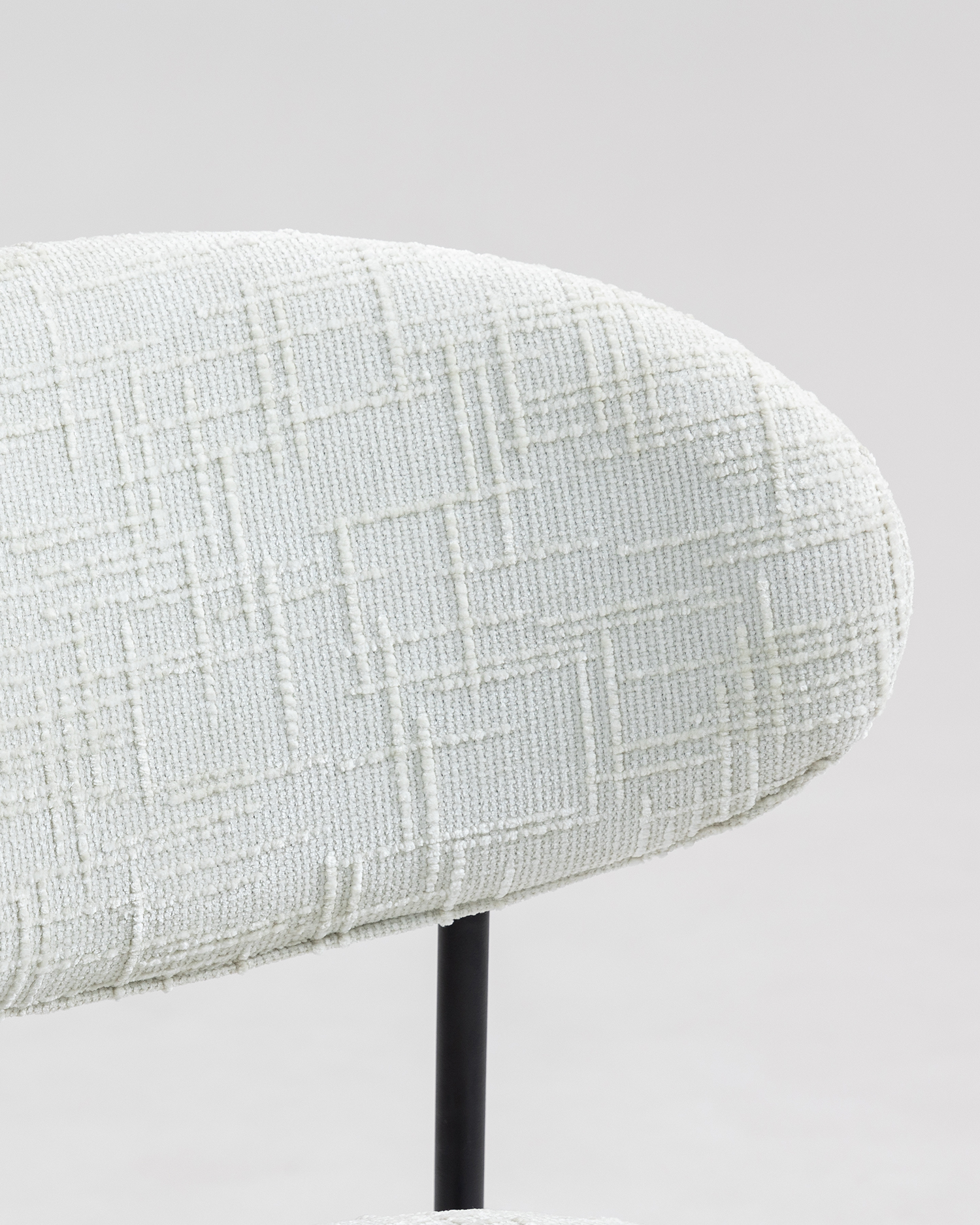 • Apresentando um estofamento branco e texturizado no banco e no encosto, oferece um toque sofisticado a qualquer cenário contemporâneo. A estrutura de metal preto resistente não apenas fornece suporte robusto, mas também adiciona uma estética elegante e minimalista.