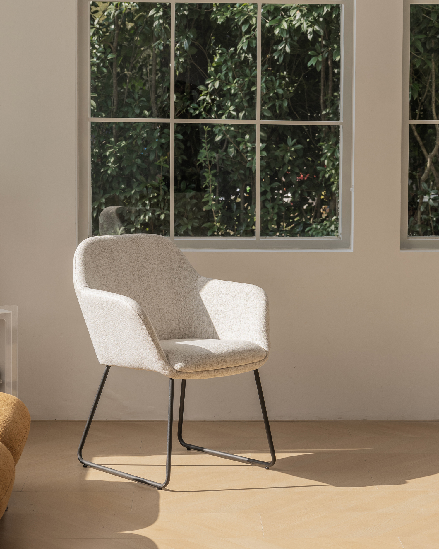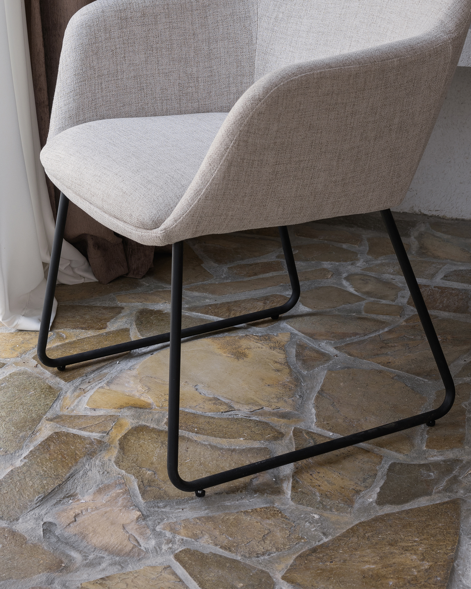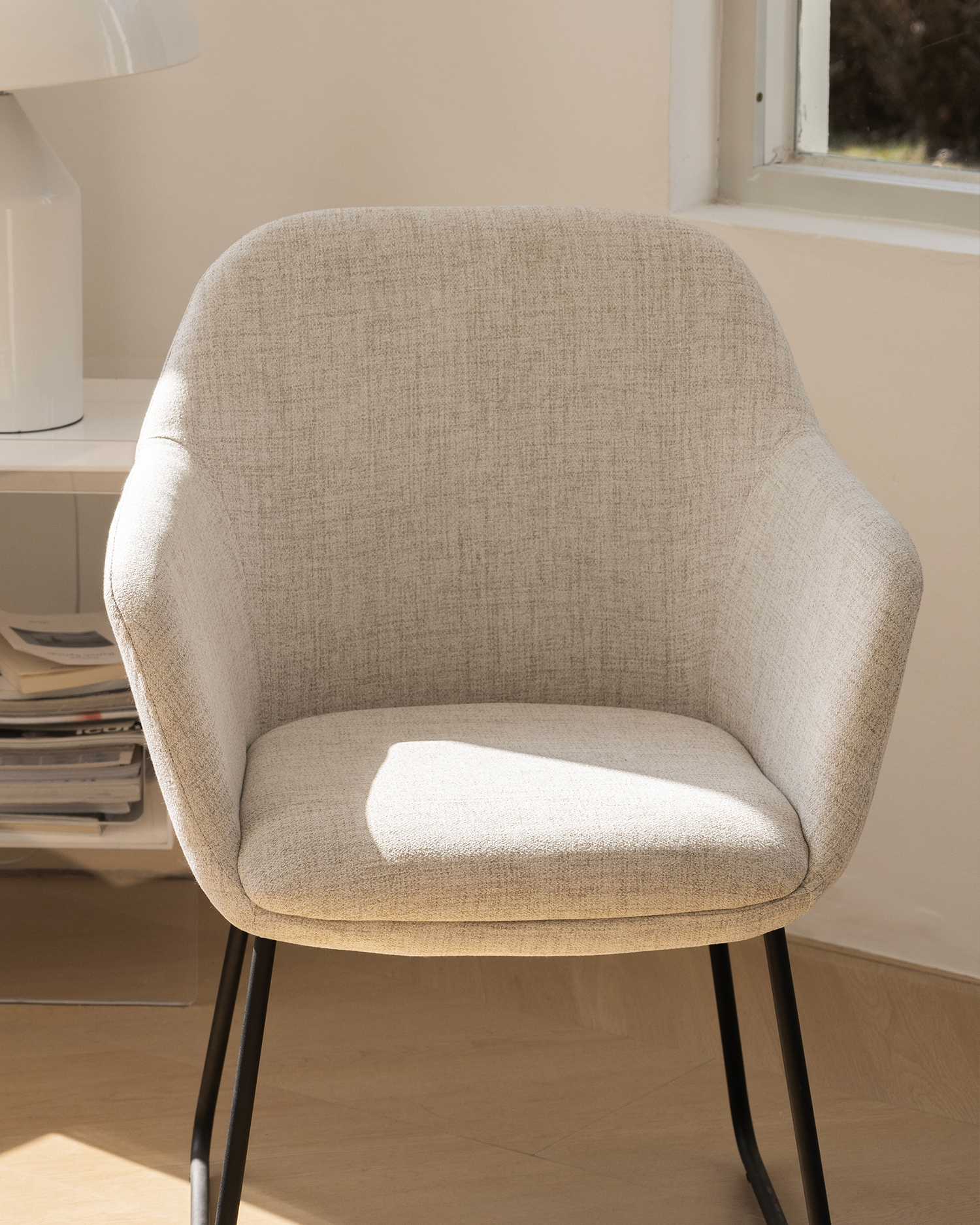 • Seu elegante estofamento bege garante o máximo conforto, enquanto o backrest curvo suporta sua espinha sem esforço. As pernas black metal da cadeira são elegantes e duráveis, garantindo estabilidade e longevidade.