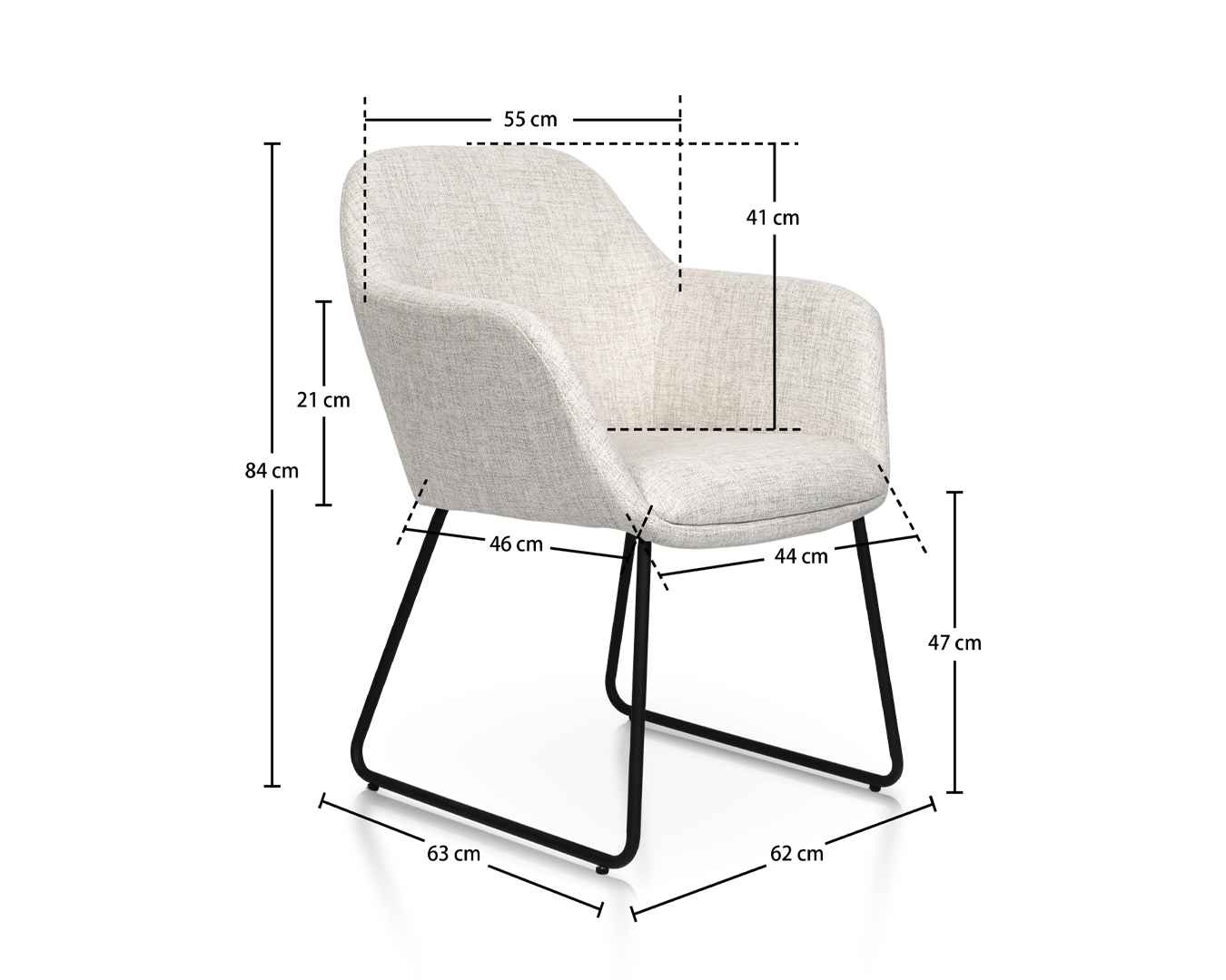 - Tamanho: W62*D63*H84CM / SH: 47cm