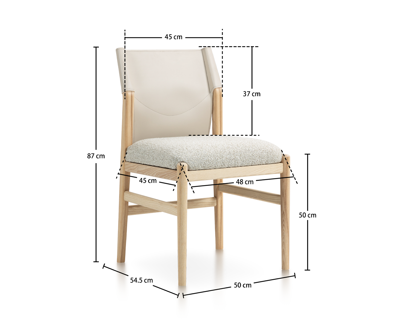 • A estrutura criada a partir de madeira de cinzas de alta qualidade mostra a beleza e a durabilidade naturais do material, com seu acabamento suave e padrões sutis de grãos adicionando calor a qualquer espaço interior. O encosto de couro de sela fornece um toque luxuoso, oferecendo estilo e suporte. Sua textura flexível e cor rica complementam o design geral da cadeira, tornando -a uma escolha ideal para quem aprecia o artesanato fino.
